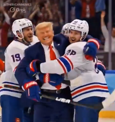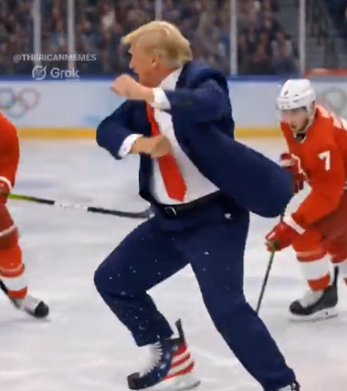 白宫报仇,一年不晚。特朗普本人更是一大早就在自己账号上发布了一段 AI 生成的视频,他本人在视频里一身西装现身冰球球场,一番精彩传球后,直接将加拿大球员推得摔在地上,然后将自己手套甩到一边,扑上去就是一顿揍。