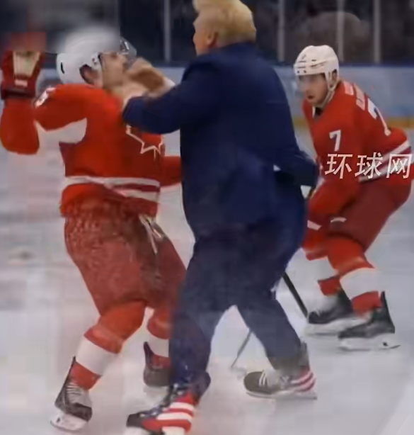 当地时间23日,特朗普在社交媒体上发布一段由人工智能(AI)生成的视频:美国队与加拿大队在冰球场上激烈角逐,特朗普则化身美国冰球运动员,手持球杆屡屡进球,甚至殴打对方。
