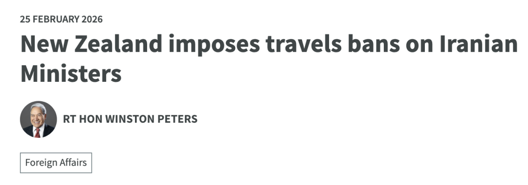 这并非新西兰首次对伊朗采取制裁。在此之前,新西兰已多次加码:先前已分三批对 55名 应对侵犯人权行为负责的伊朗个人实施了旅行禁令。