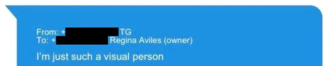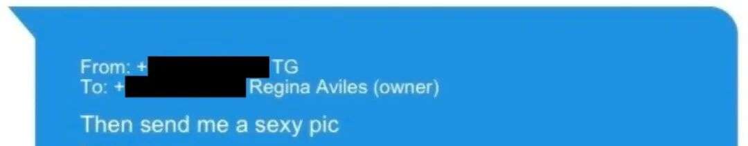 当他问妻子短信的内容时,雷吉娜回答:“看到这些你不会高兴的。”