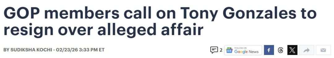 最近,美国共和党众议员托尼·冈萨雷斯(Tony Gonzalez)的婚外情丑闻被吵得沸沸扬扬。