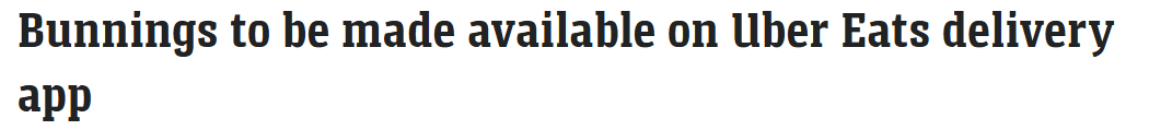 Bunnings入驻Uber Eats:承诺60分钟内送货上门!