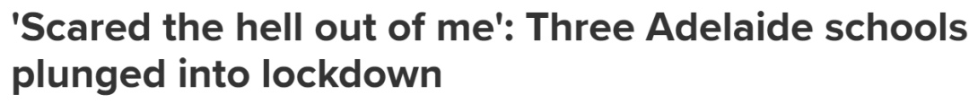 2月25日中午,Adelaide东北部的 Gleeson College、Golden Grove High School 和 Pedare Christian College 因警方搜寻一名“可疑男子”进入封锁状态,学生被要求躲在橱柜或地上。警方要求 Golden Grove High School 作为预防措施实施封锁,因三所学校距离较近。现场视频显示部分学生通过社交媒体向家长求助,称自己躲在柜子里,感到非常害怕。