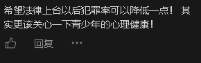 希望法律上台以后犯罪率可以降低一点! 其实更该关心一下青少年的心理健康!
