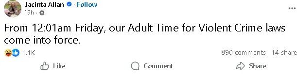 事实上,昆州早在去年就推行了类似政策——“Adult Crime, Adult Time”(成人罪行,成人惩罚):