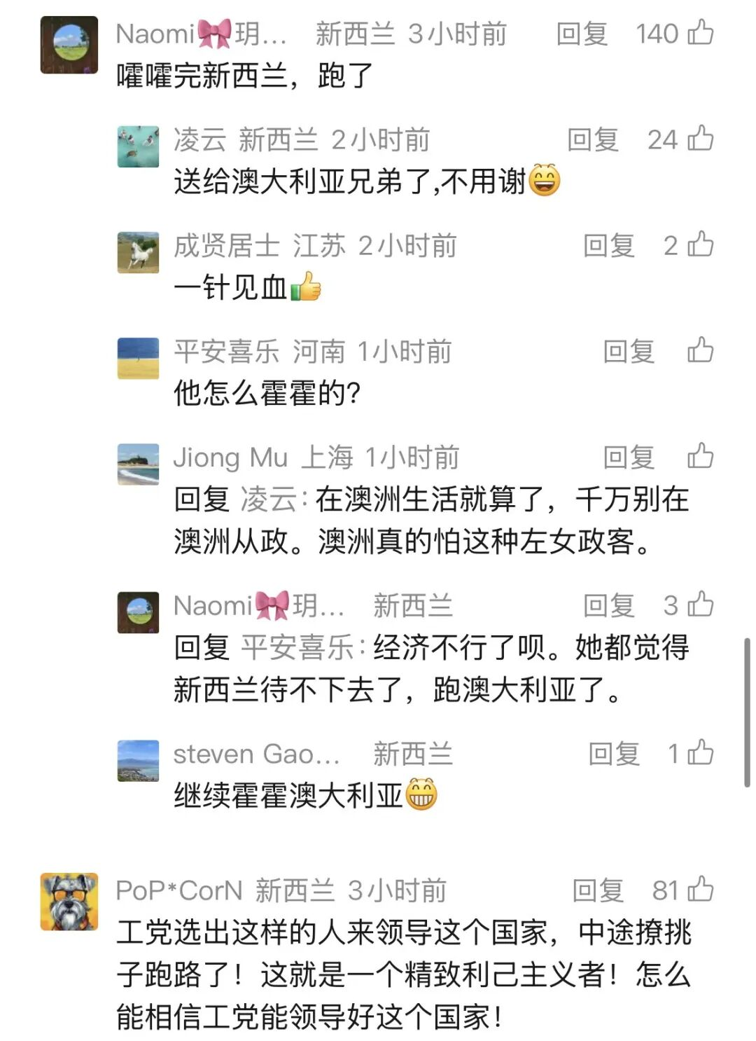 而最高赞的评论是:“嚯嚯完新西兰,跑了。”