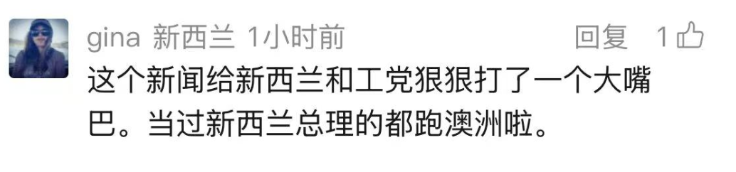 “这个新闻给新西兰和工党狠狠打了一个大嘴巴,当过新西兰总理的都跑澳洲啦。”