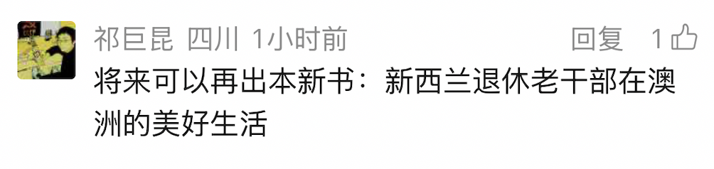 “将来可以再出本新书:新西兰退休老干部在澳洲的美好生活。”