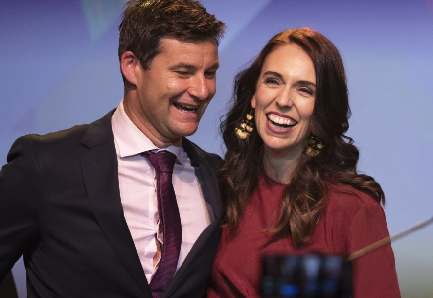 Ardern与丈夫Clarke Gayford。Photo: AP/ Mark Baker