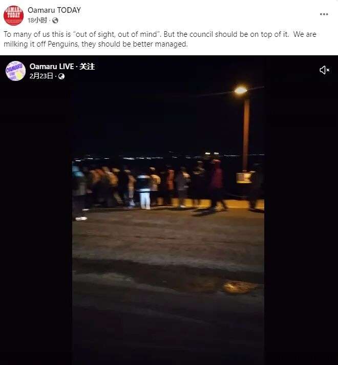 Oamaru Today昨日视频上贴文称,对我们许多人来说,这属于“眼不见心不烦”。但市政委员会理应对此保持高度关注。“我们正从企鹅身上榨取利益,它们理应得到更妥善的管理。”