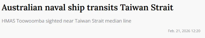澳洲国防部的官网上公布了一则消息,就在2月20日和2月21日,澳洲皇家海军图文巴号护卫舰穿越了台湾海峡。