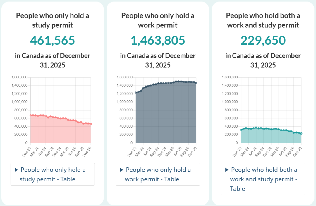 数据显示,2025年新入境的留学生与临时外劳总数较前一年减少了361,935人,降幅显着。截至去年12月底,全加持有学习许可的人数为461,565人,持有工作许可者则为1,463,805人,另有约23万人同时持有两类证件。