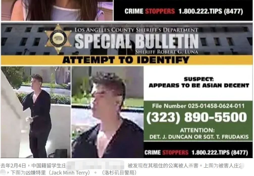 2025年2月4日,中国籍女留学生庄某被发现在其租住的公寓被人杀害。警方数日后逮捕22岁亚裔嫌犯特里(Jack Minh Terry),他被控谋杀罪。近日,本案进入初步听审会(preliminary hearing),检方须向法官证明,已掌握足够证据,可将本案推进到审理阶段。而随着检方邀请三位关键证人作证并列出多项证据,庄某被谋害细节也浮出水面。