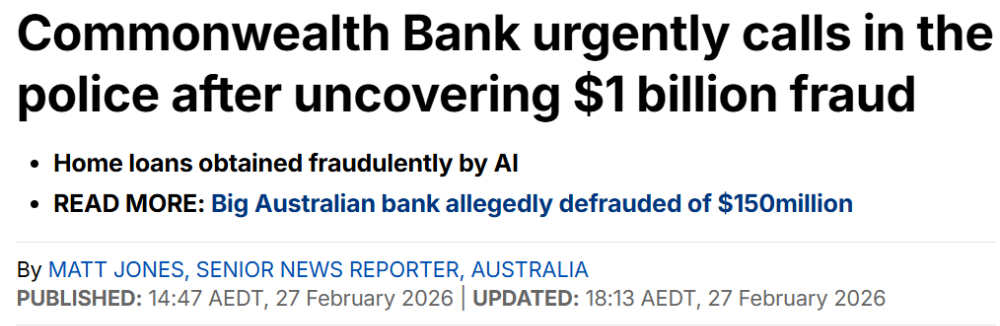 案件被曝光后,CBA银行也开始审查自己的贷款审批流程,结果发现自己也被骗了——大约10亿澳元的住房贷款可能都是通过伪造的文件批准的。