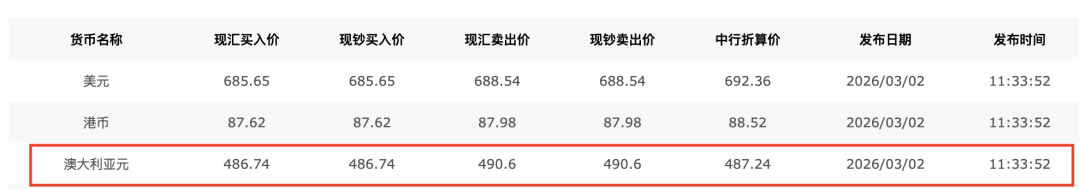 同时,澳币兑换人民币的汇率也随之波动,直接跌到: