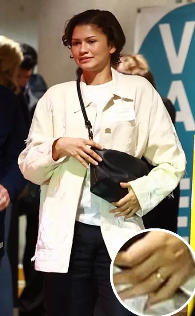 今年2月20日,赞达亚本周在洛杉矶外出时,无名指上戴着一枚新的金戒指。