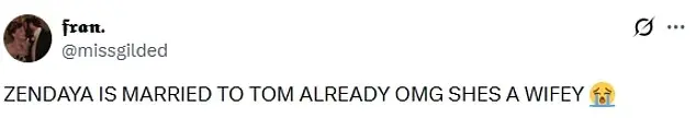 这立刻引发了网友猜测:“赞达亚已经和汤姆结婚了!我的天哪!她当妻子了!”