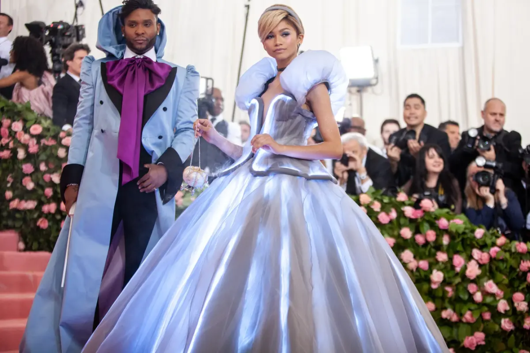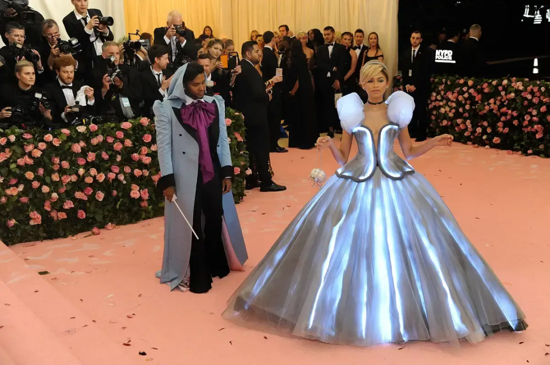2019年的Met Gala,赞达亚身穿发光的辛德瑞拉长裙,他是她的仙女教母。