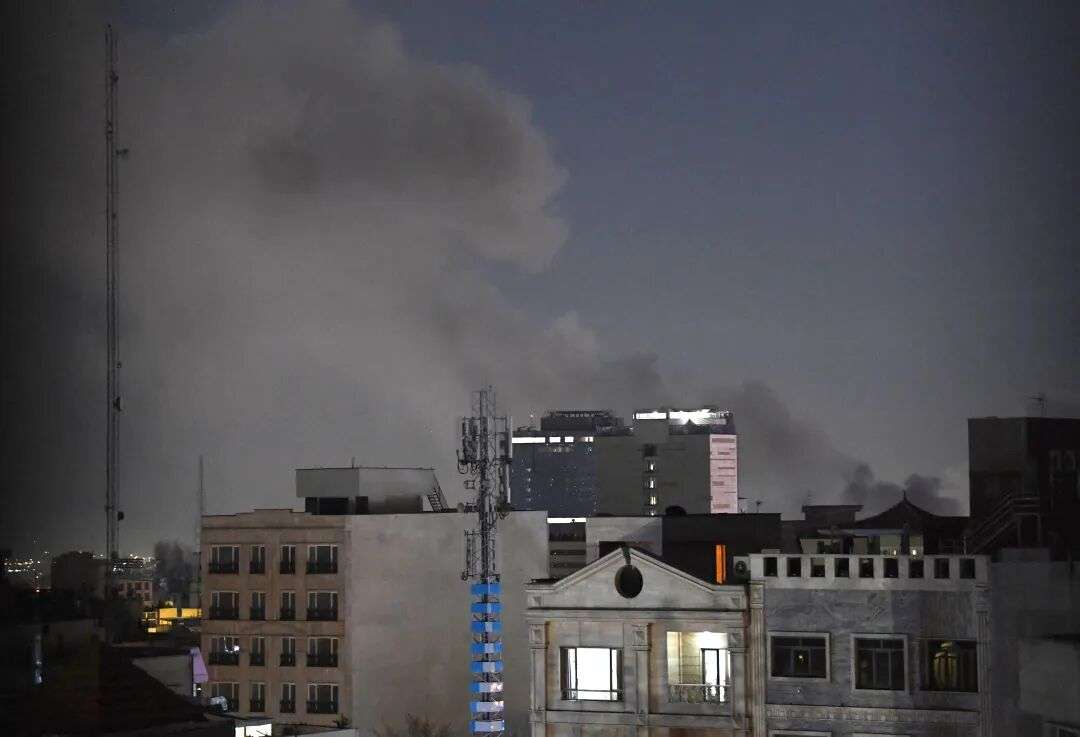 这是3月1日晚在伊朗首都德黑兰市区拍摄的浓烟。新华社记者 沙达提 摄