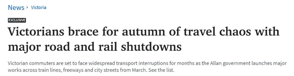 收藏注意!下月起,墨尔本多条道路封闭、多个火车线由巴士代替!
