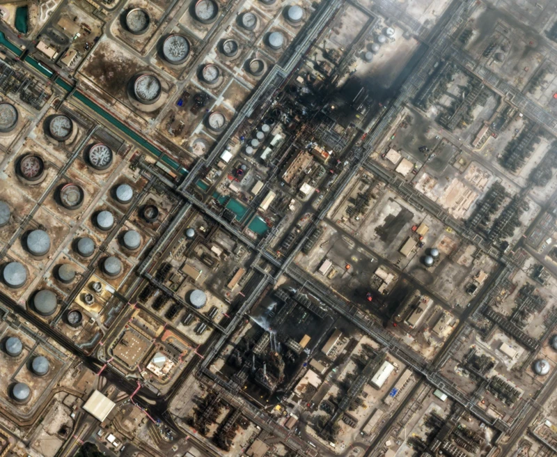 与此同时,沙特阿拉伯的重要石油设施也遭到无人机袭击。最新卫星图像显示,位于拉斯塔努拉的全球最大炼油厂之一在袭击中受损。该炼油厂隶属于沙特阿美公司,位于波斯湾沿岸,每天生产超过50万桶原油,是沙特重要的原油出口枢纽。