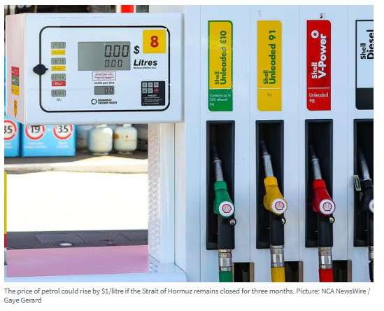 Westpac经济学家Sian Fenner表示,如果具有战略重要性的Hormuz海峡持续关闭三个月,汽油价格每升可能上涨1澳元,这反映出Brent原油价格将达到每桶185美元。周二Brent原油交易价格约为每桶78美元,高于美以首次空袭伊朗前的70美元。石油公司内部数据显示,阿德莱德、布里斯班、墨尔本和悉尼的批发汽油价格每升已上涨6至7澳分。