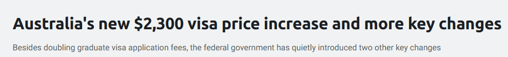 据《sbs》报道,澳政府已将部分毕业后工作签证的申请费提高了一倍。