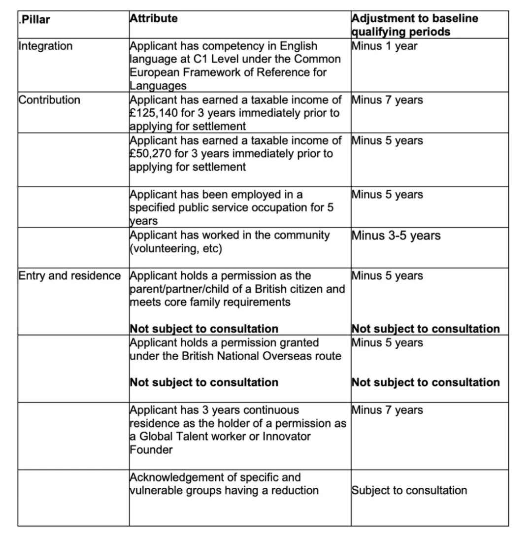 Contribution(贡献) | 三年内税前收入 ≥ £125,140 | 减少 7 年 |