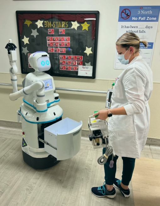 位于纽约州罗切斯特的 Rochester Regional Health 也是其中之一。该医疗系统副总裁 Casey Wilbert 表示,他们拥有 528张床位,从2023年开始使用Moxi,目前医院已经部署了8台机器人。
