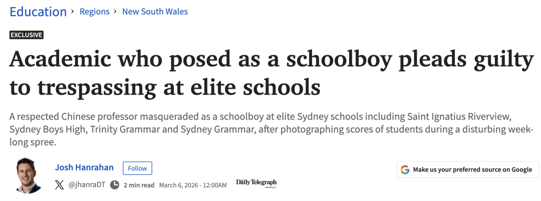 收藏刚刚,Sydney Grammar“冒牌学生”被抓,老师立功了