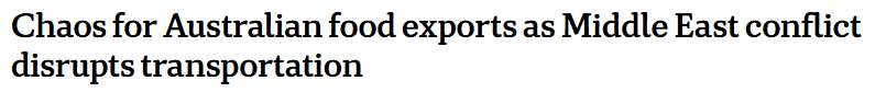 中东地区冲突持续升级,正在对澳大利亚食品出口造成明显冲击。