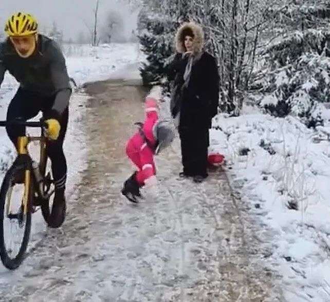 好在地上积雪够厚,Mpasa女儿并没有严重摔伤。