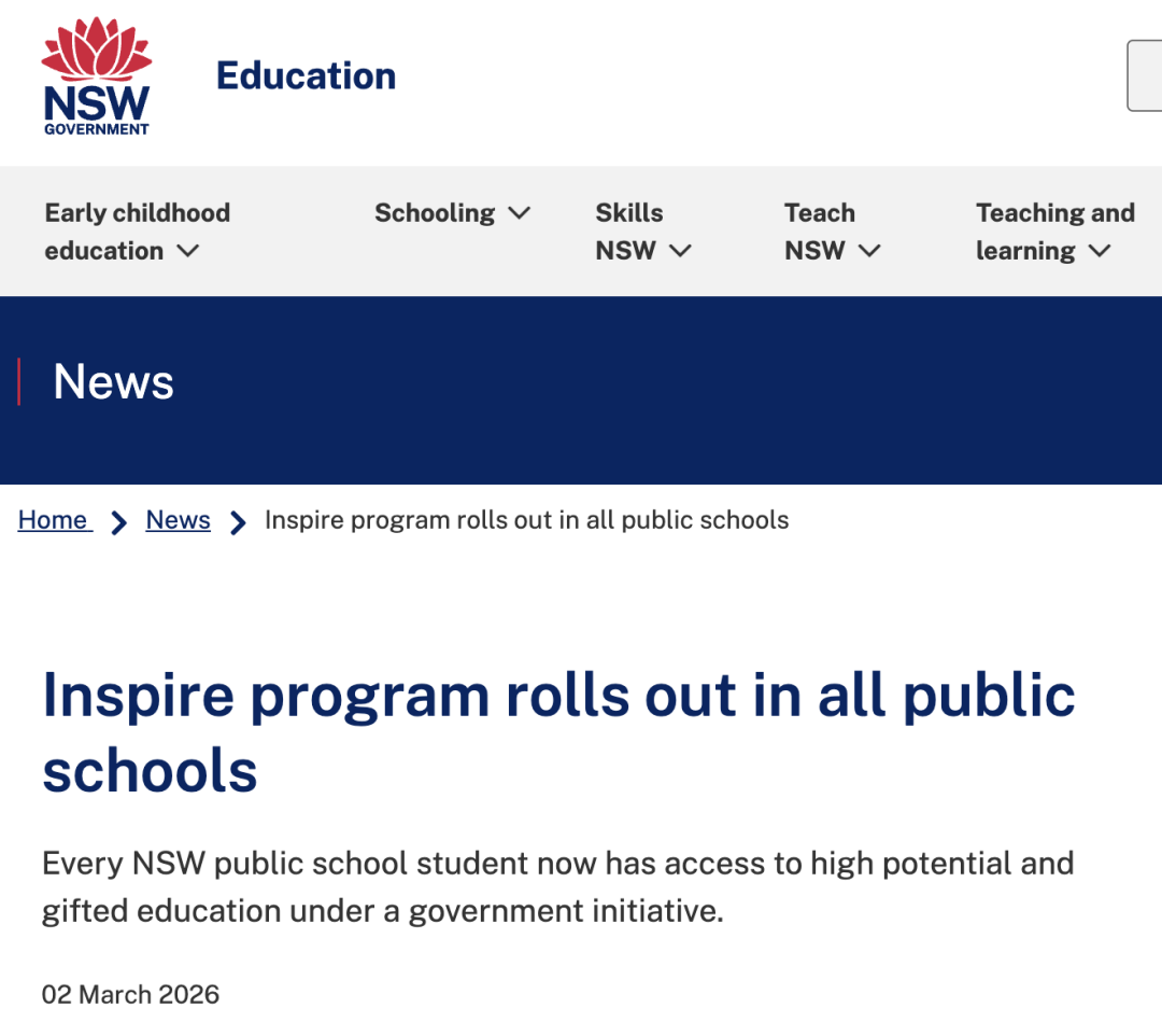 教育部长Prue Car表示,这个名叫 “Inspire” 的教育改革计划,简单来说,就是新州要把“天才生教育”塞进每一所公立学校。
