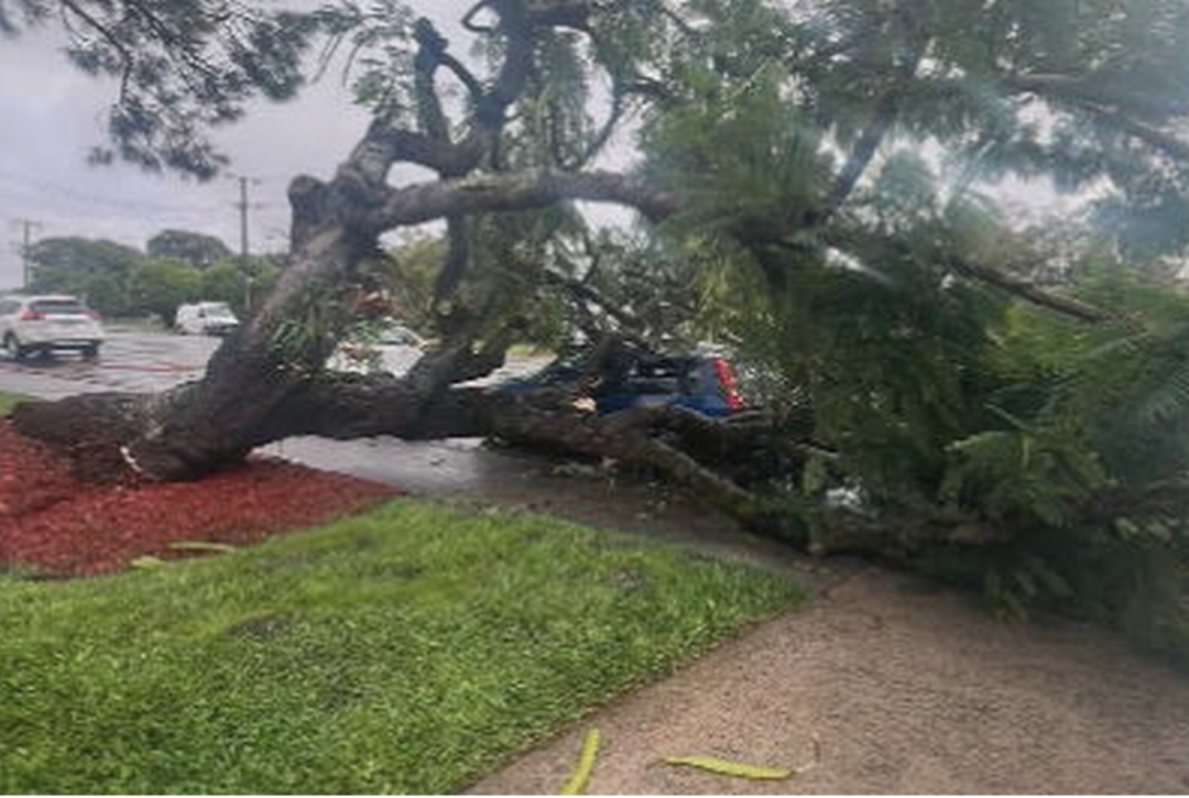 持续降雨已经给布里斯班带来明显影响。Cleveland 地区有树木倒塌压到汽车,Mt Coot-tha 俯瞰市区的视野几乎被密集雨幕完全遮挡。