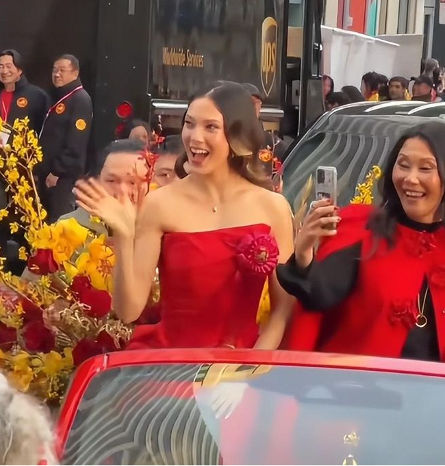 她以巡游总指挥(Grand Marshal)的身份登场,坐在一辆铺满鲜花的敞篷车里向人群挥手。当谷爱凌乘坐花车经过时,沿途观众纷纷举起手机拍照,现场气氛明显被推向高潮。
