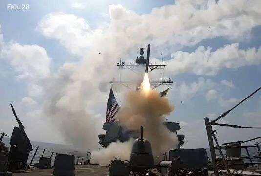自2月28日美以对伊朗发动攻击以来,美国海军舰艇已向伊朗发射数十枚战斧导弹。