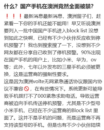 针对的大概率是中国产的小米手机,因为不符合澳洲的部分规定,所以被大面积禁止在澳洲使用。
