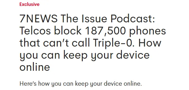 首先澳洲三大运营商Telstra、Optus和TPG表示,如果发现任何影响拨打紧急求救电话的手机,都会第一时间发送短信通知,要求升级通讯设备!