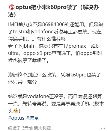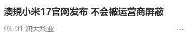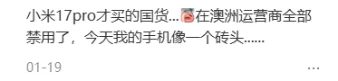 我们先来看第一个帖子:小米17pm澳洲被禁