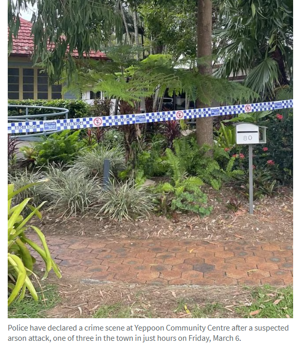 Capricorn Coast Food Relief Inc.发帖称:"我们遗憾地通知您,Yeppoon的食品救济中心当天关闭。社区中心区域内的建筑物(包括我们的棚屋)被纵火烧毁。"