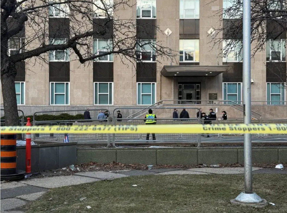 突发!周二(3月10日)清晨,位于加拿大多伦多市中心的美国领事馆突遭开枪射击,现场发现多枚弹壳,领馆大门被打坏。