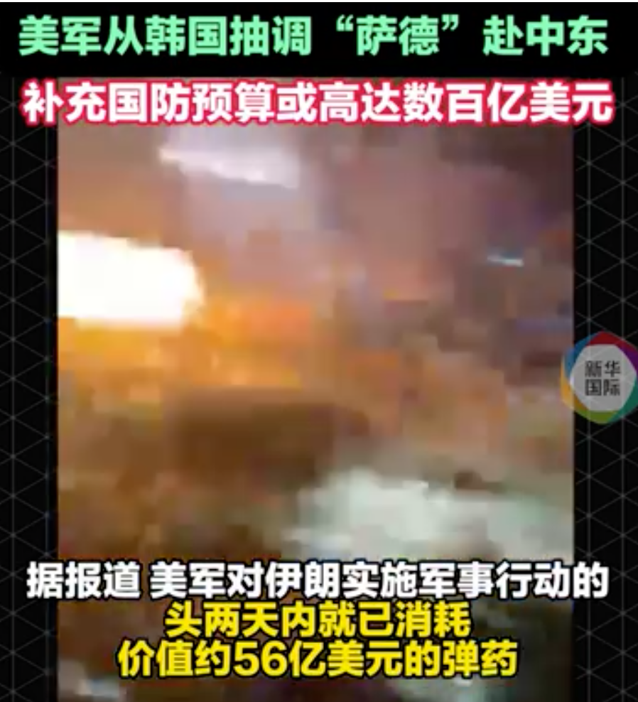 此外,有多名不愿透露姓名的美国政府官员告诉该报,美军在对伊朗实施军事行动的头两天内就已消耗价值约56亿美元的弹药。报道说,特朗普政府预计最早将于本周向国会提交一份补充国防预算申请,总额可能高达数百亿美元。