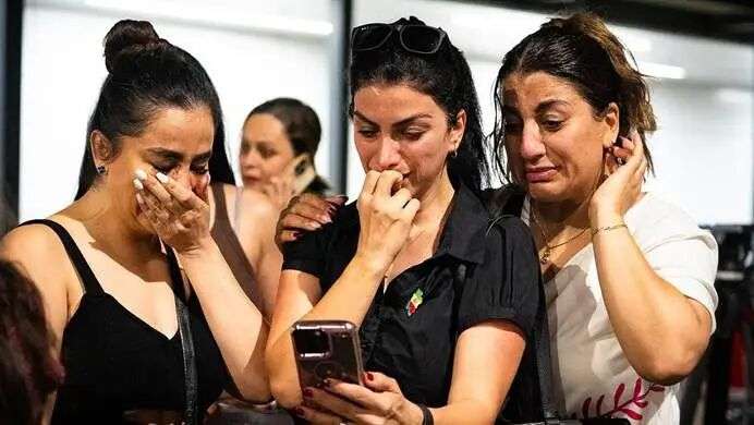 现场一度爆发混乱,民众指认一名推着行李的女子为伊朗革命卫队(IRGC)成员,并对其高喊“恐怖分子”。