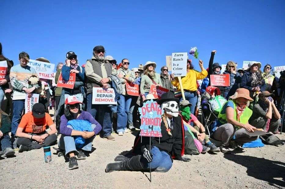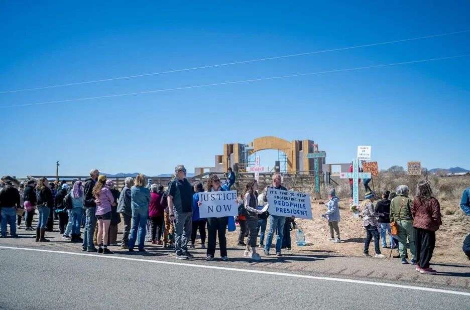 他们举着“佐罗牧场是一处犯罪现场”、“现在需要公正”的标语,声援爱泼斯坦案的受害者。