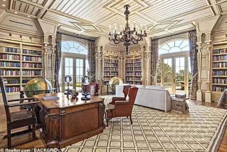 主体建筑一共三层,共有4间卧室、1个客厅、1个图书馆和1个厨房,内部装修富丽堂皇。