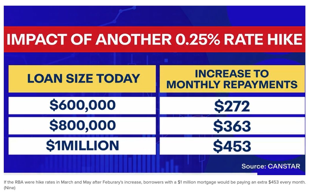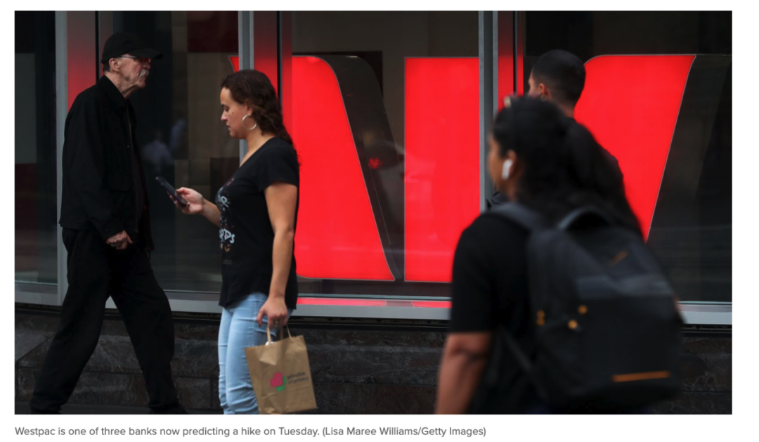目前澳洲的官方现金利率已经在今年 2月被上调至3.85%。不过,最新市场预期显示,加息周期可能还没有结束。包括 Commonwealth Bank、Westpac 和 NAB 在内的三家大型银行,现在都预计央行可能在 下周再次加息0.25个百分点,如果发生,这将把现金利率推高到 4.1%。