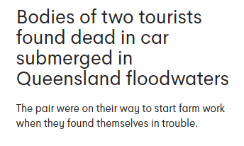 但这场悲剧,也为所有在澳洲生活和旅行的人敲响了警钟——在极端天气来临时,千万不要冒险上路!