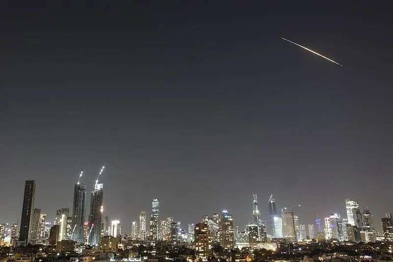 △3月11日,以色列特拉维夫,一枚导弹划过特拉维夫上空。