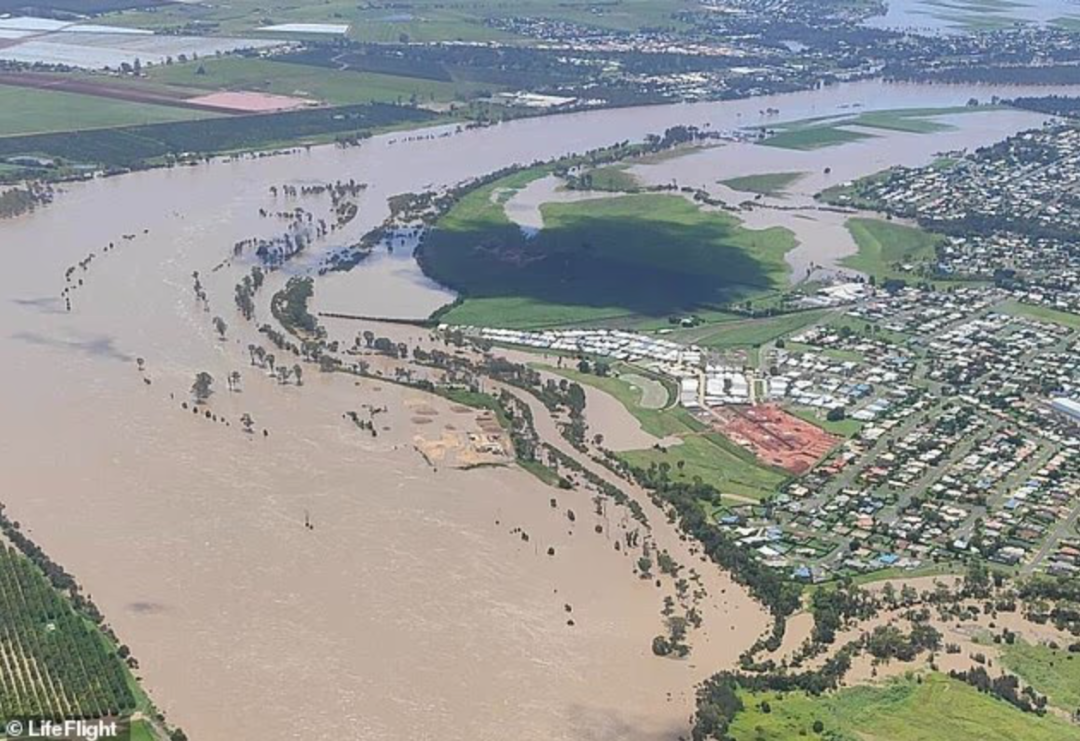 Burnett河水位一度飙升至7.4米的峰值,导致数百座房屋被淹,多处交通中断。
