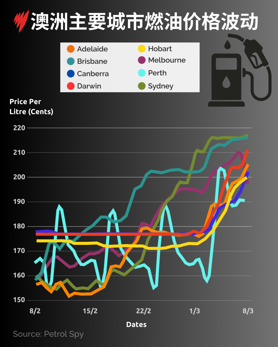 受中东战争扰乱霍尔木兹海峡原油运输影响,澳洲零售油价急剧飙升,引发全国性恐慌性购油,监管部门紧急出手规范市场,维州率先推出每日油价上限新规。业内预测,当前油价高位大概率将持续至国际油市及中东局势明显缓和,短期内难以快速回落。